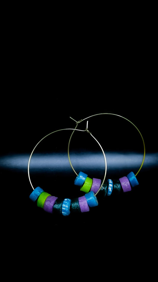 GNONLIVI- Boucles d'oreilles créoles en perles de verre recyclé - Bleues et Violettes