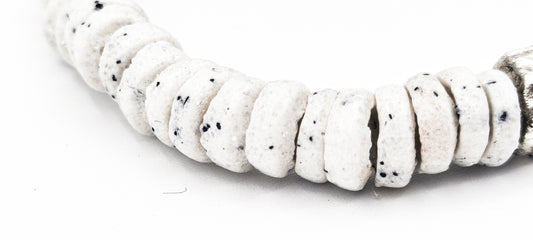 CAMÉLÉON ARGENT- bracelet blanc sel et poivre- perles africaines krobo