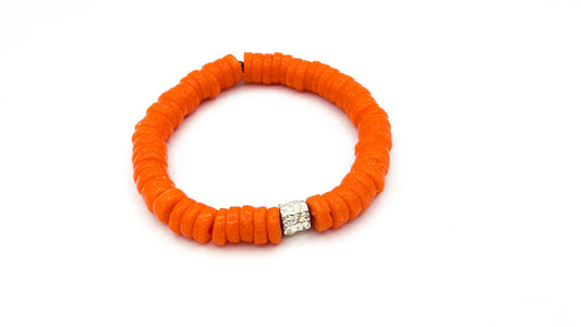 CAMÉLÉON ARGENT - bracelet orange- perles africaines krobo