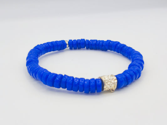 CAMÉLÉON ARGENT - Bracelet bleu- perles africaines krobo