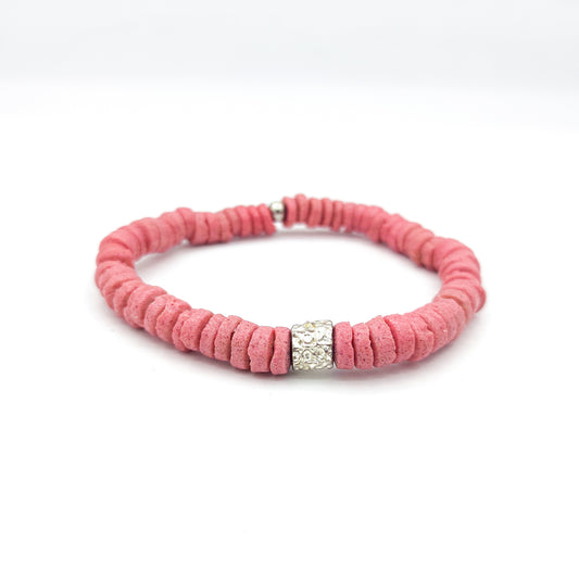 CAMÉLÉON ARGENT - Bracelet rose- perles africaines krobo