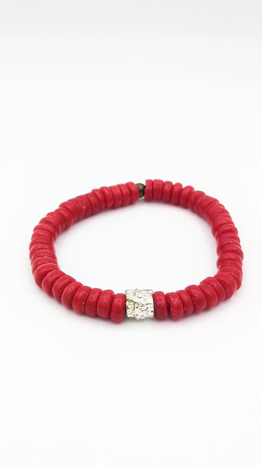 CAMÉLÉON ARGENT - bracelet rouge- perles africaines krobo