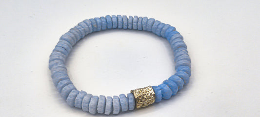 CAMÉLÉON ARGENT - Bracelet bleu pastel- perles africaines krobo