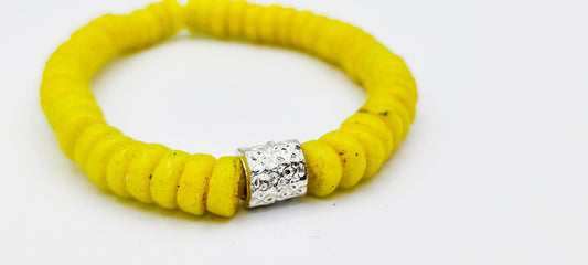 CAMÉLÉON ARGENT- bracelet jaune - perles africaines krobo