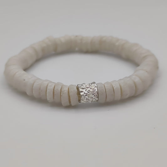 CAMÉLÉON ARGENT- bracelet blanc- perles africaines krobo