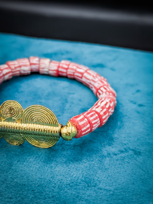 BRACELET rouge GNONLIVI ondulations- perles africaines krobo