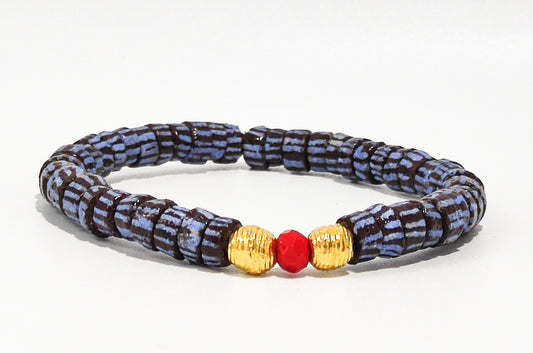GNONLIVI- Bracelet bleu argenté en perles africaines krobo