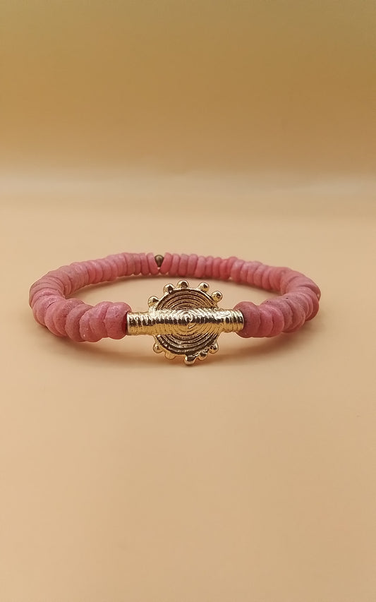 CAMÉLÉON DORÉ - bracelet rose- perles africaines krobo