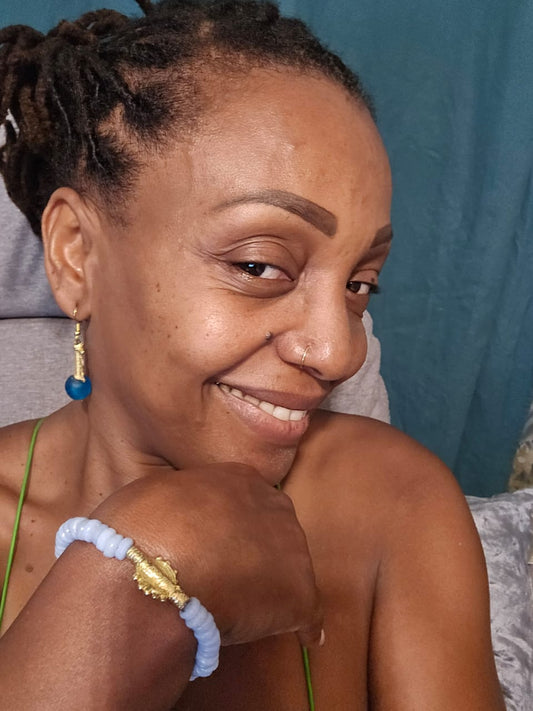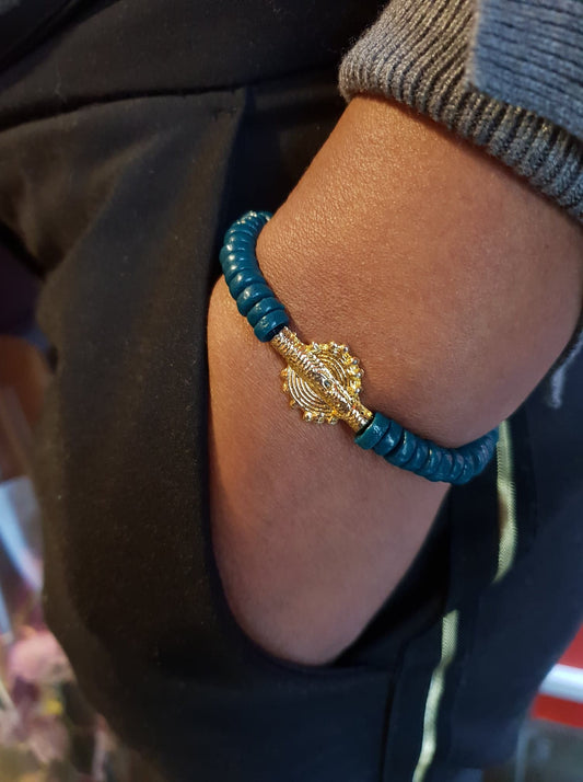 CAMÉLÉON DORÉ - Bracelet bleu- perles africaines krobo