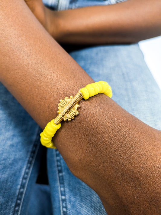 CAMÉLÉON DORÉ - bracelet jaune fluo- perles africaines krobo