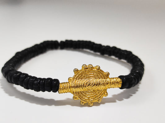 CAMÉLÉON. Bracelet noir. Perle akan couleur or
