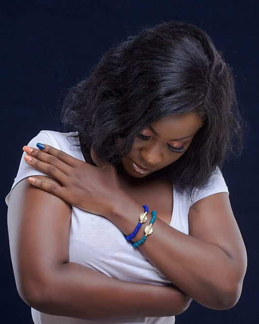 CAMÉLÉON- Bracelet bleu roi- perles africaines krobo