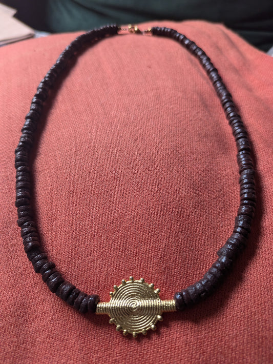 CAMÉLÉON. Collier marron- Perle akan couleur or