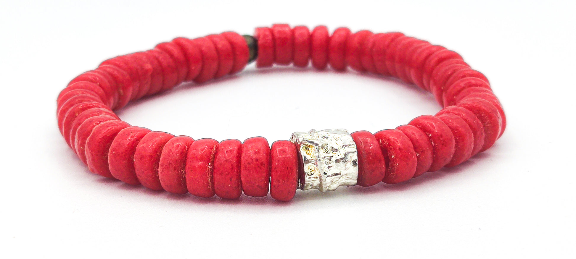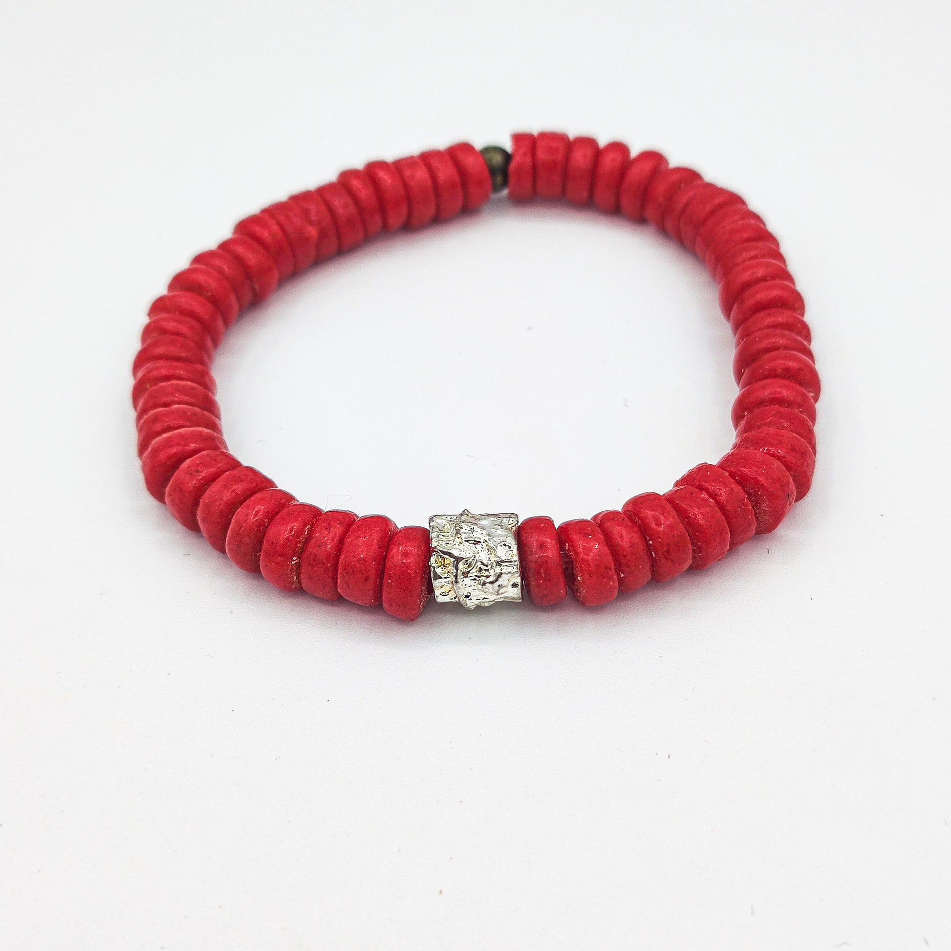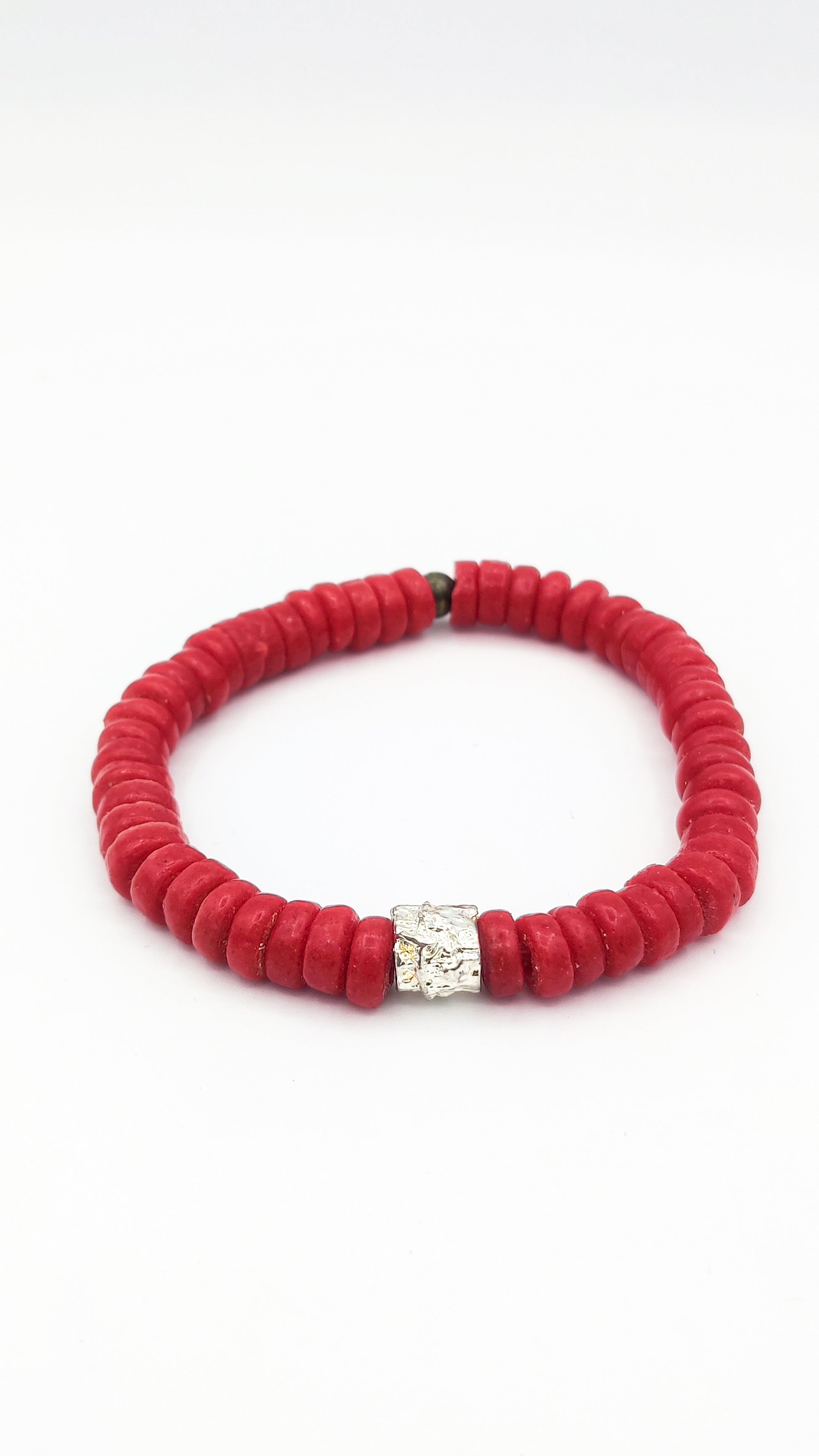 [[ SILVER CHAMELEON ]] - pulsera roja - cuentas krobo africanas