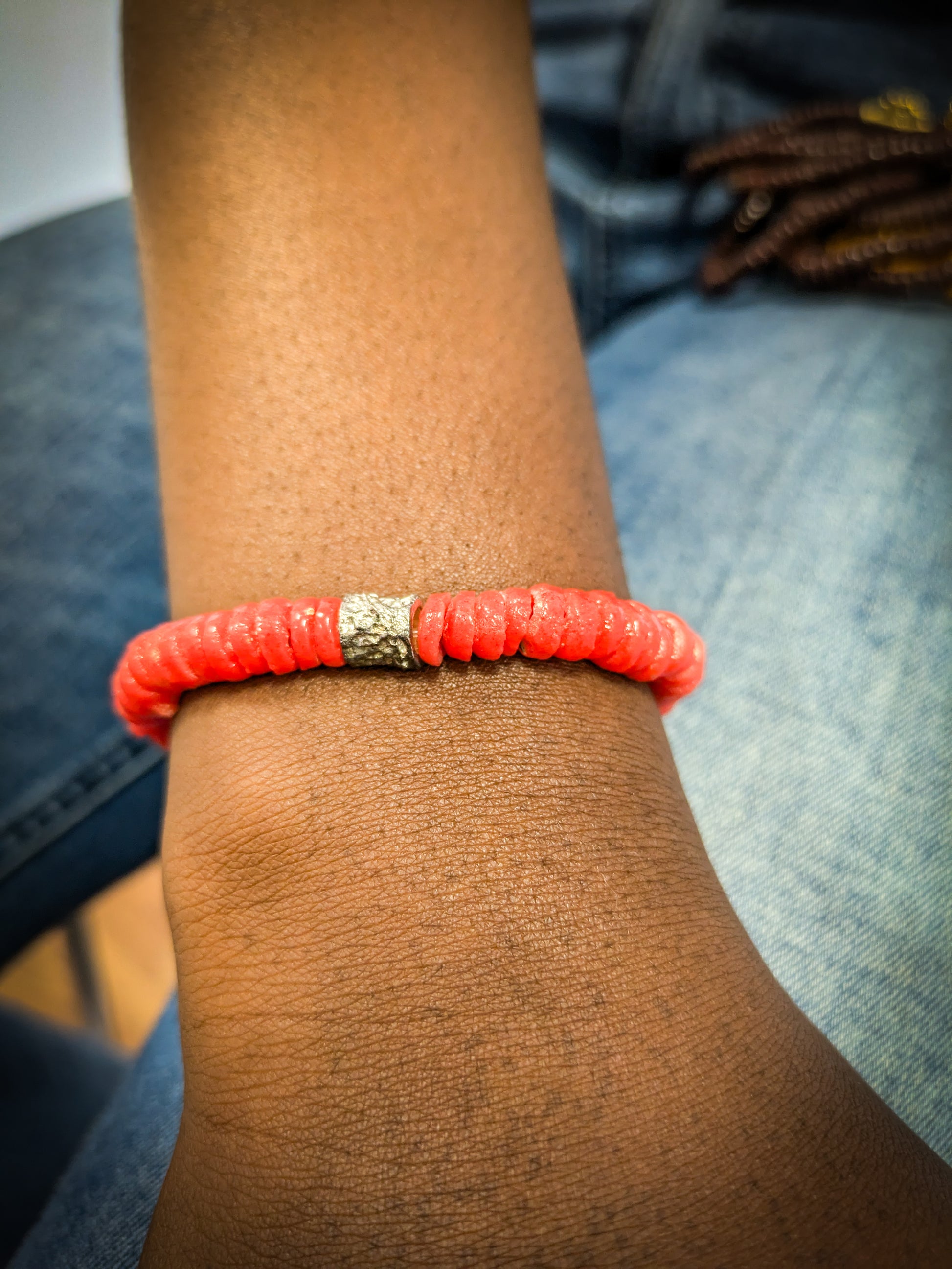 Con el CAMALEÓN, regálate, tanto hombres como mujeres, un toque de originalidad con esta joya africana y déjate seducir por su toque plateado , asociado a este color de 🔥 que confiere a esta pulsera un aspecto único.