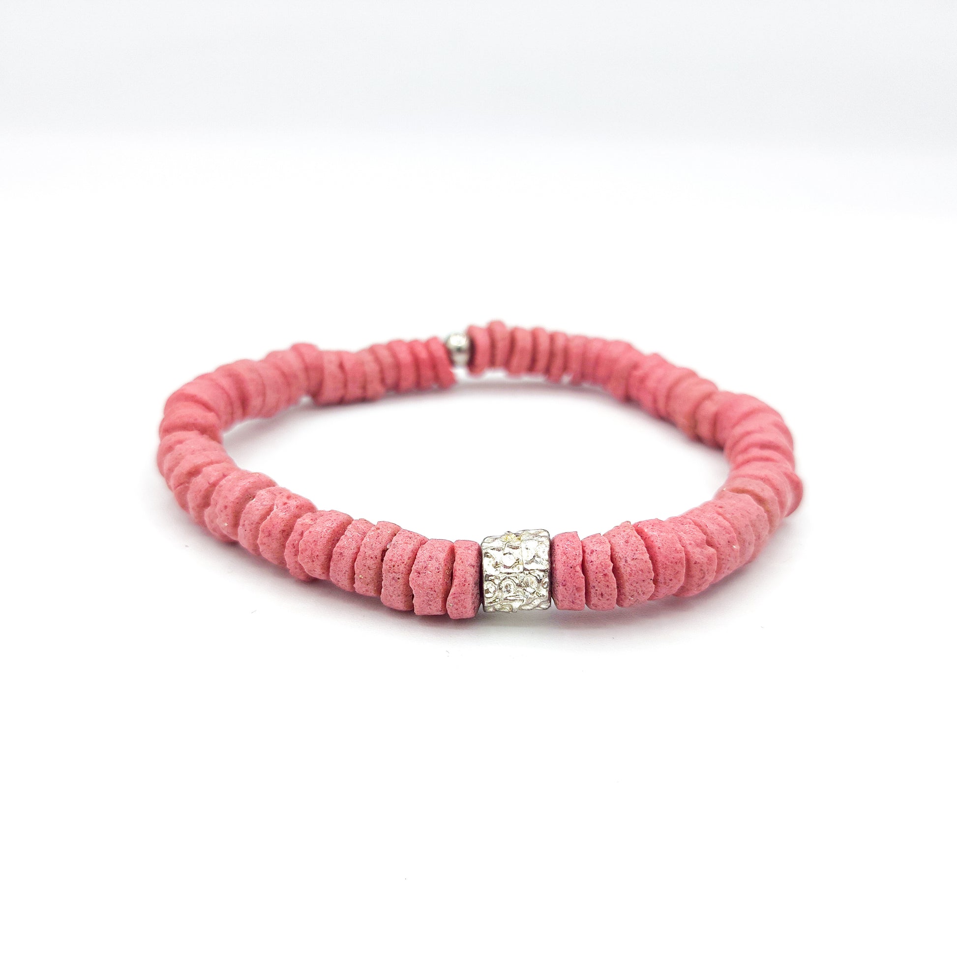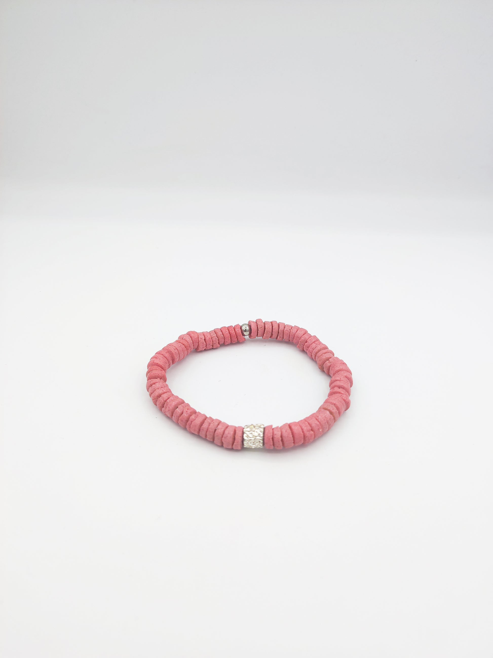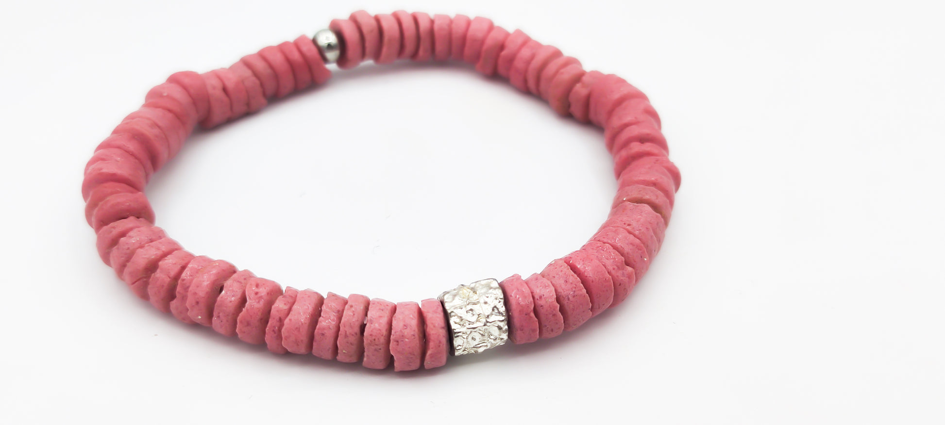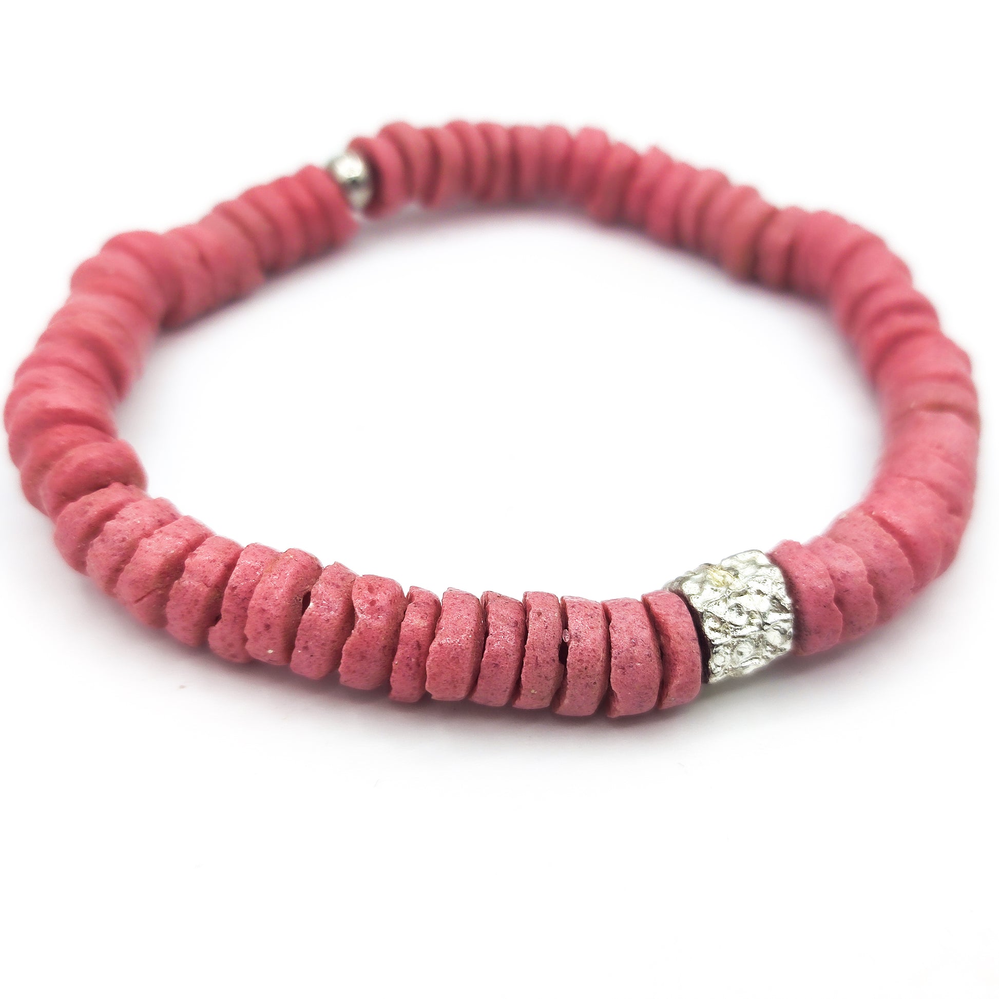 [[ CAMALEÓN DE PLATA ]] - Pulsera rosa - Cuentas krobo africanas
