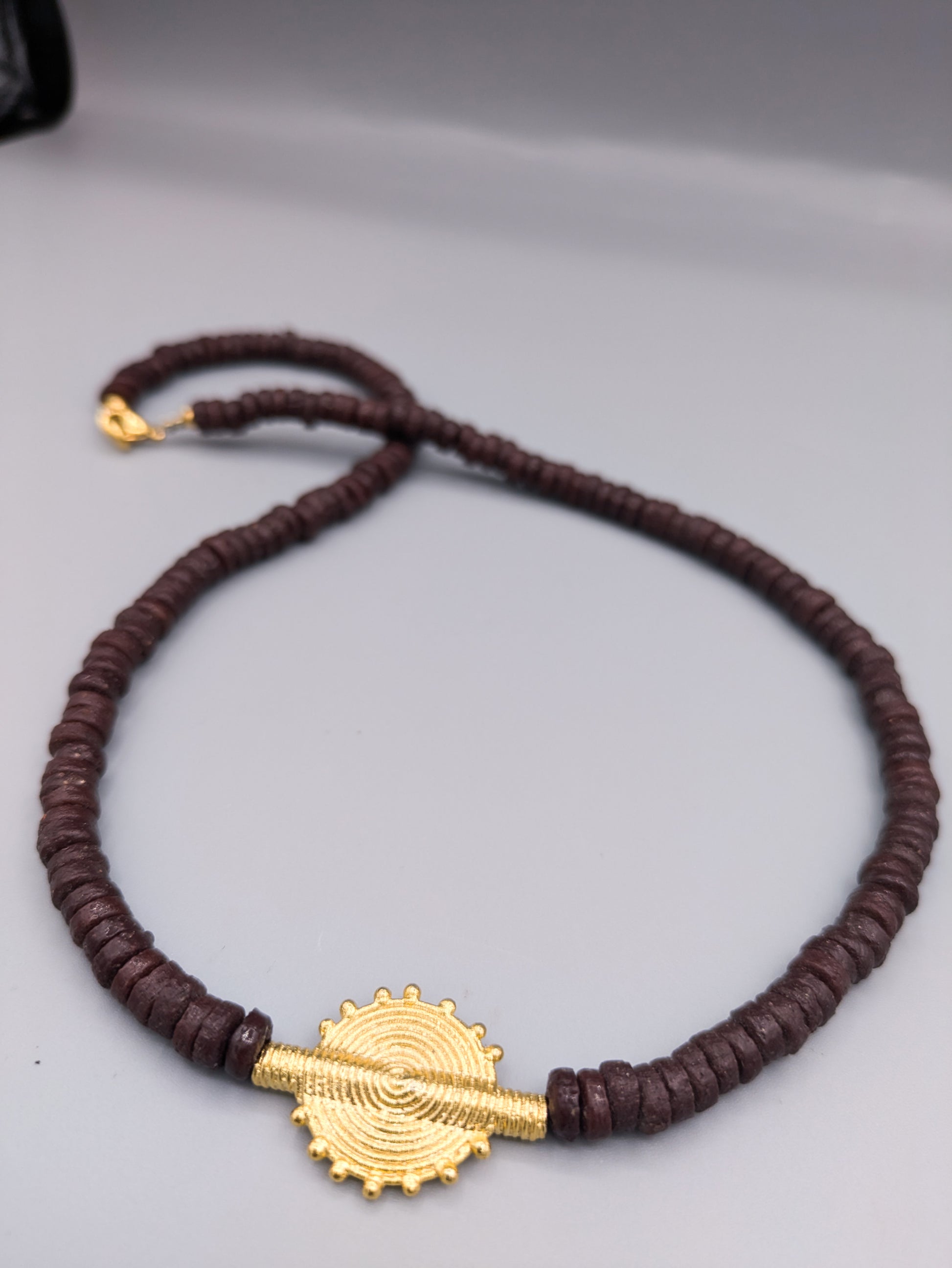 CAMÉLÉON. Collier marron- Perle akan couleur or