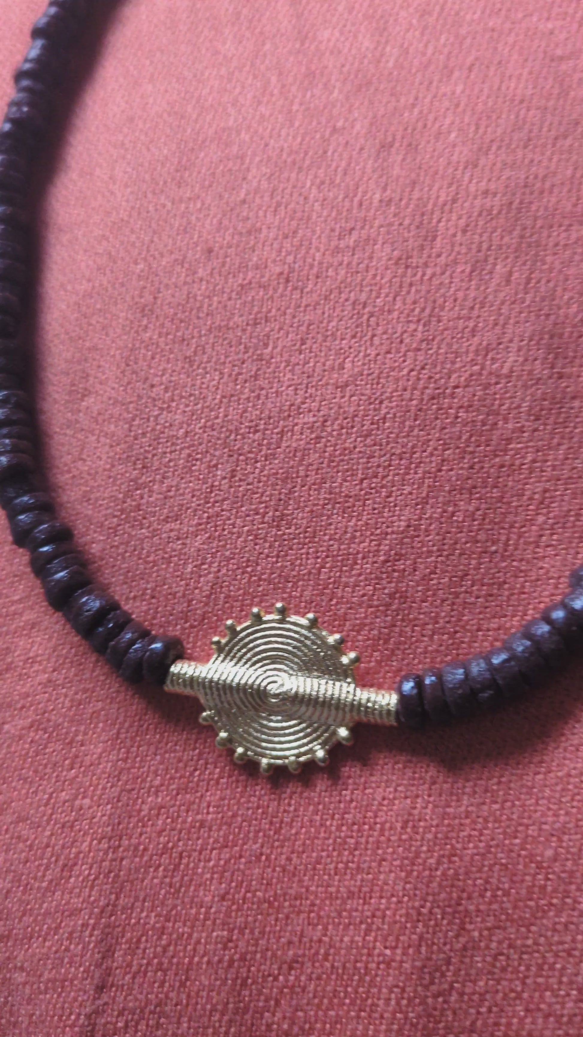 ▪️🔸Il se décline là avec un poids akan ( perle de laiton) en forme solaire.