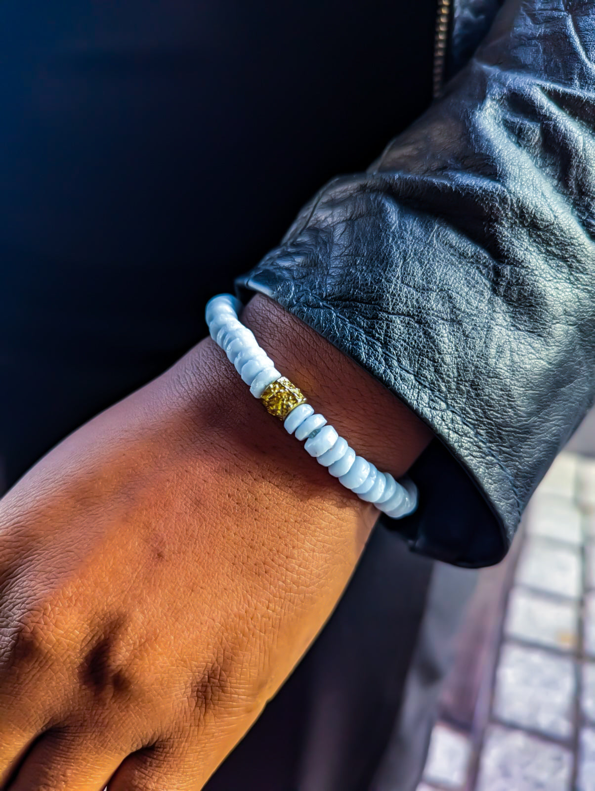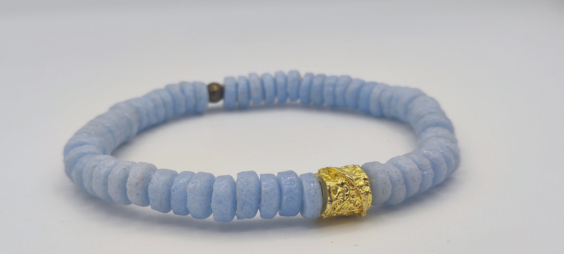 [[ GOLDEN CHAMELEON ]] - Pulsera azul pastel - Cuentas krobo africanas