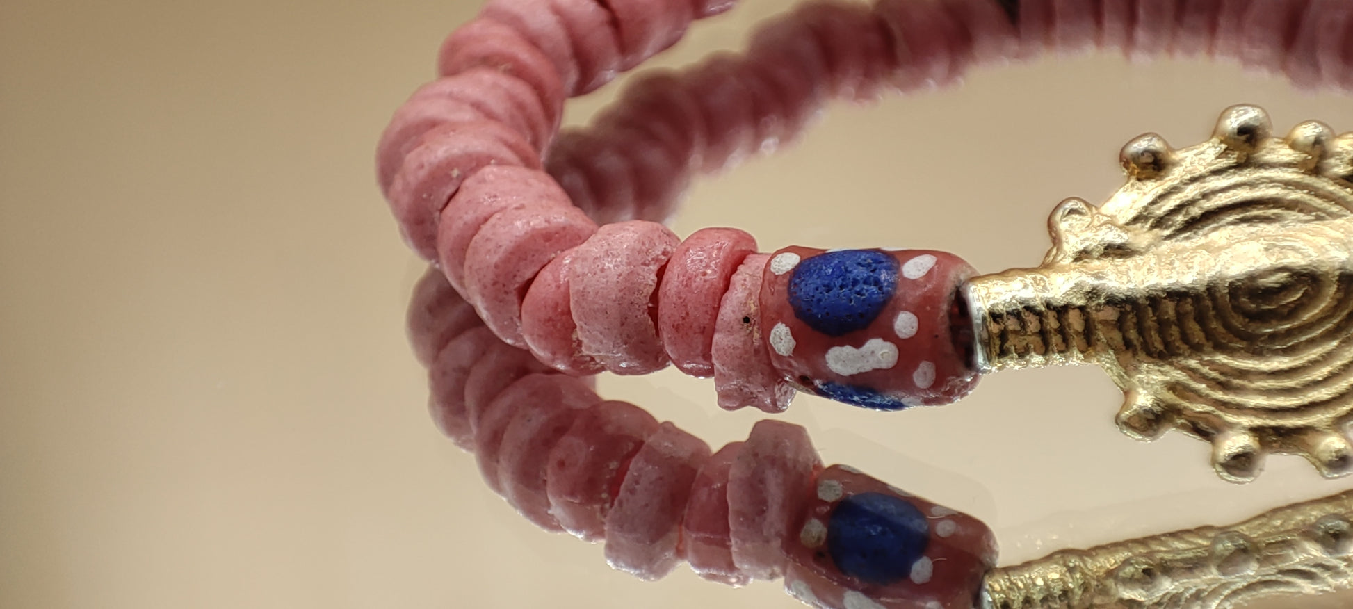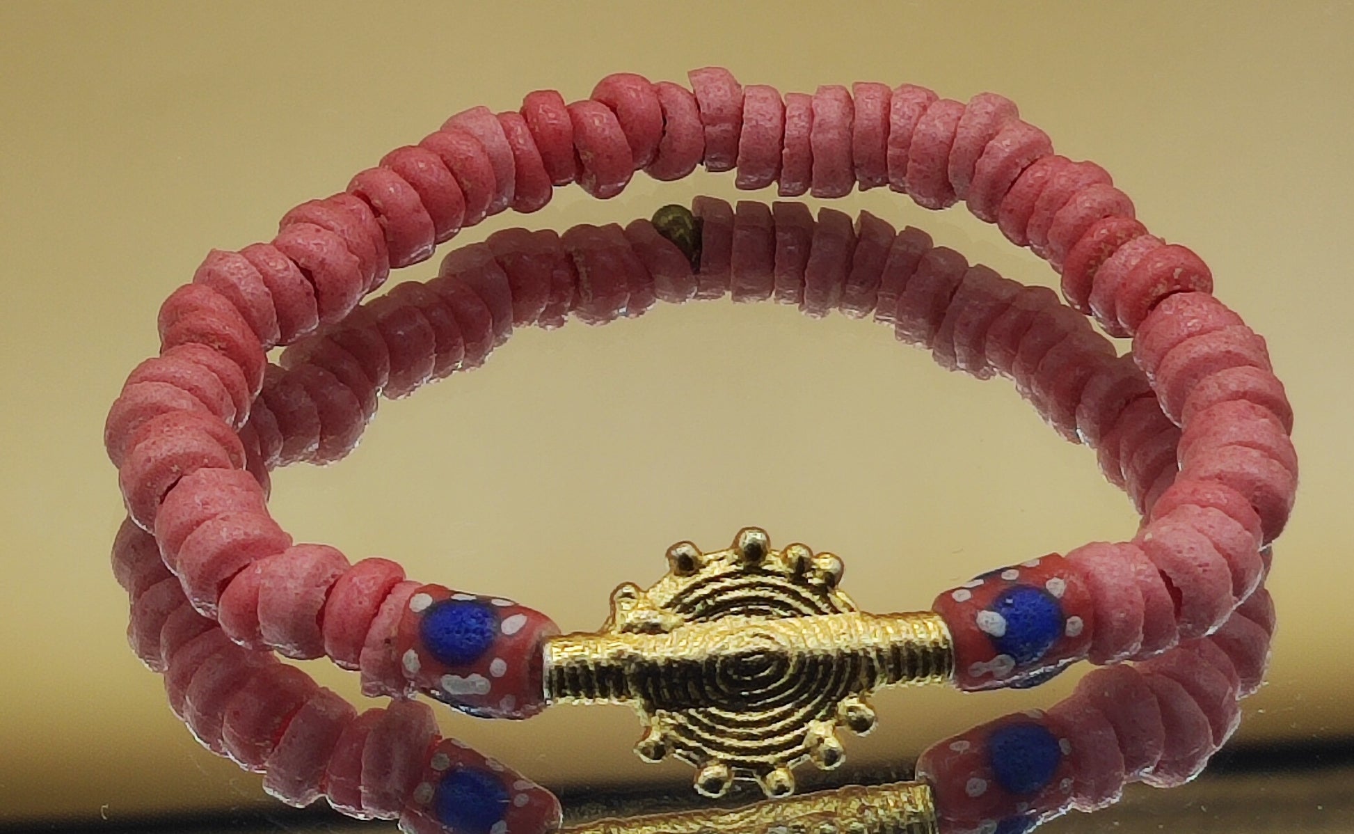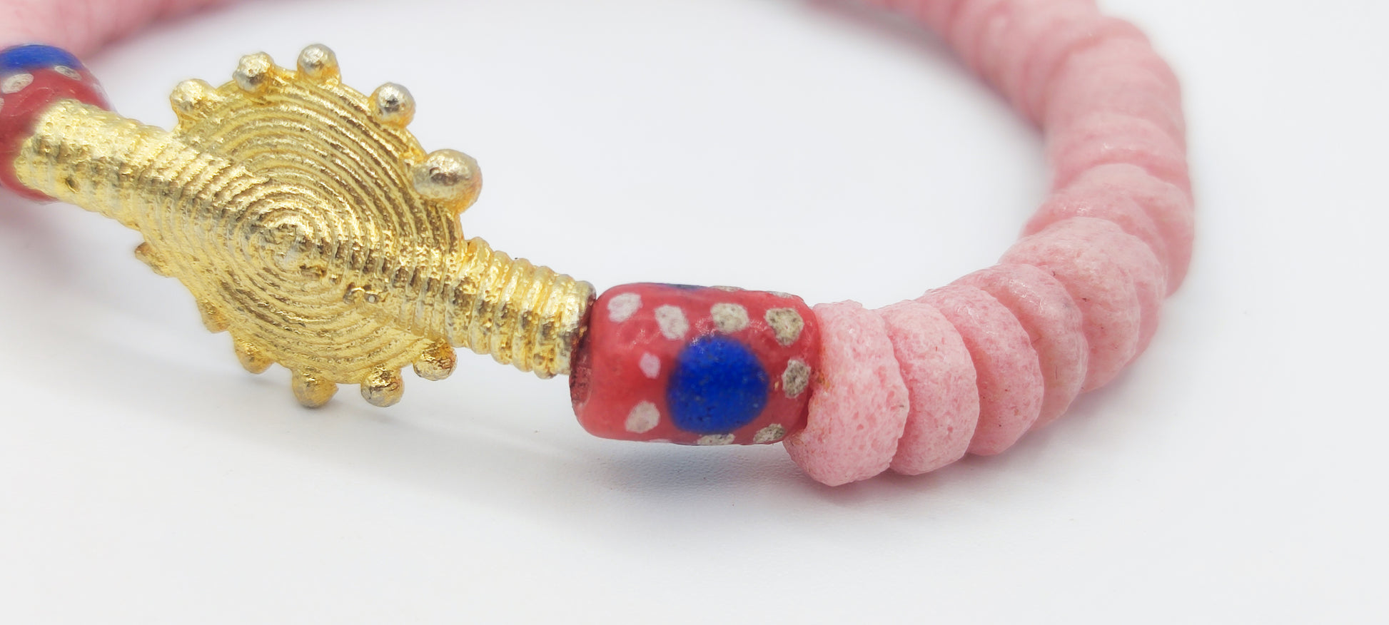 Avec le CAMÉLÉON, offrez-vous homme comme femme une touche d'originalité avec ce bijou africain et laissez-vous séduire par son poids Akan solaire, associé à ce beau rose poudré.