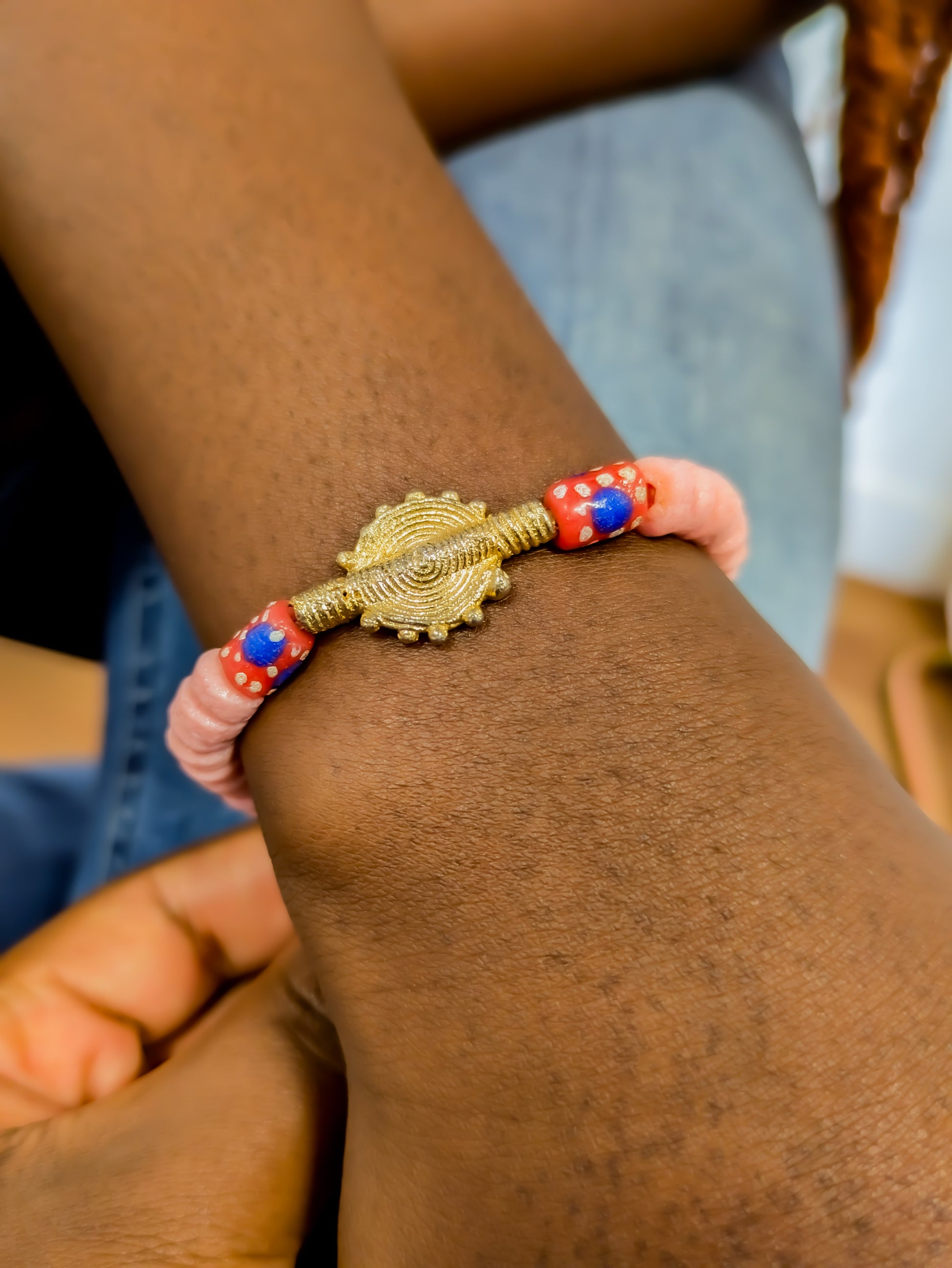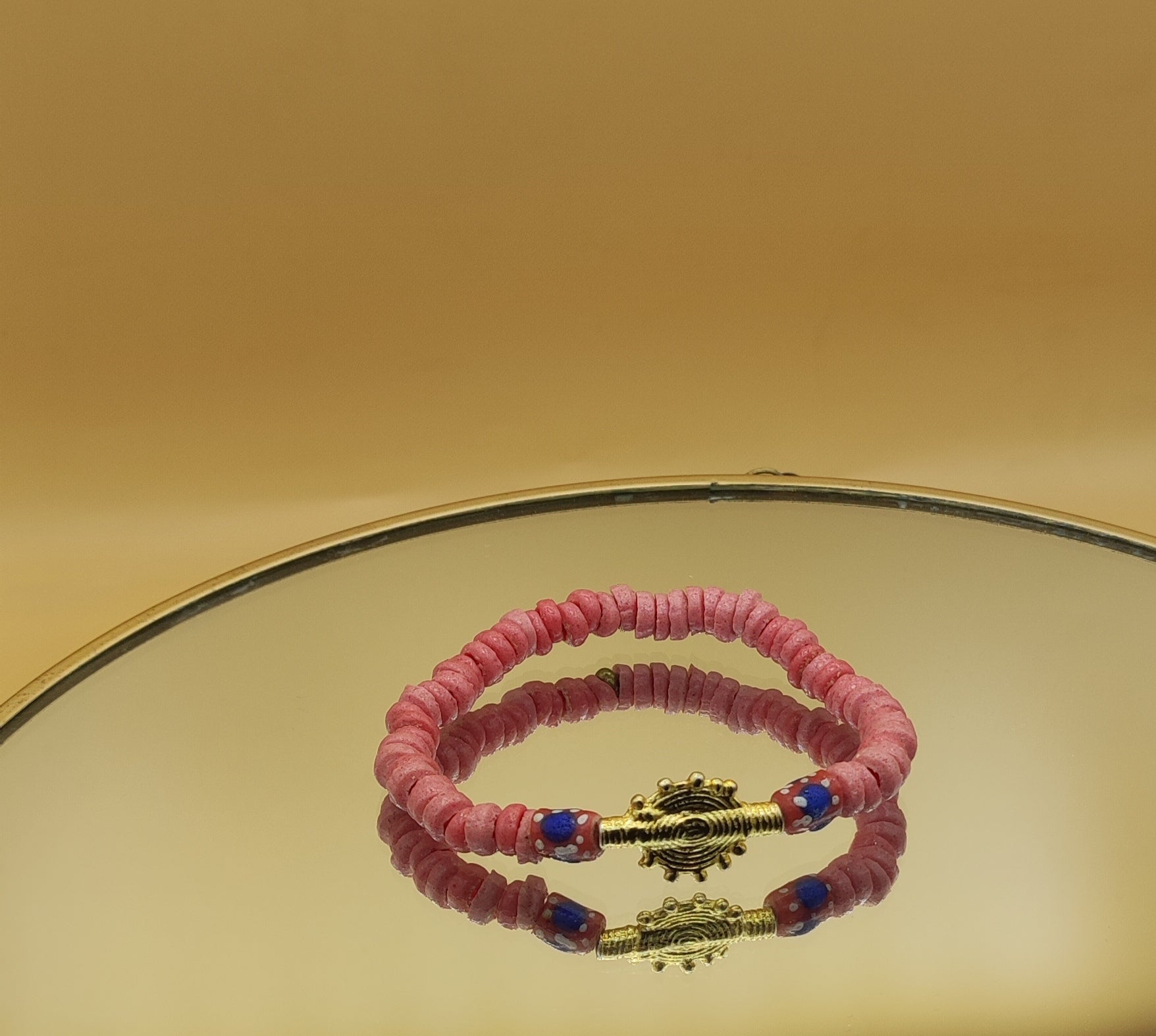 CAMÉLÉON FLORAL - Bracelet rose et rouge en perles africaines Krobo